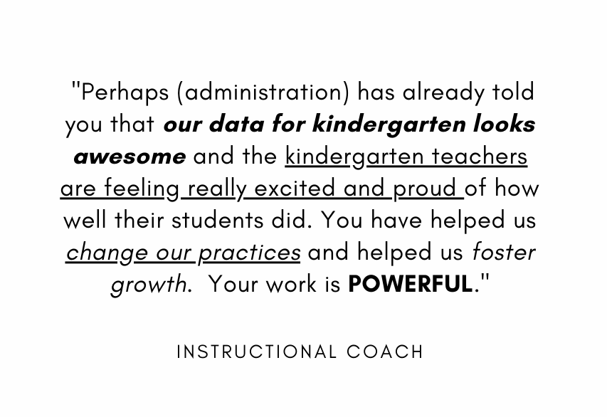 "We hadn't been getting a lot of resultsĀ (with our kindergarten students).Ā Since doing this (Building Kindergarten Readers - BKR) we've seen a switch in our student's ability to pick up texts and know how to read them and how to interact with them. It definitely helps with phonics.Ā Students feel successful (which creates joy). Students are engaged all of the time.Ā This gives meĀ an avenue of teaching the skills in context and yet isĀ the quickest they have been able to pick up sounds.Ā It's fifteen minutes a day."