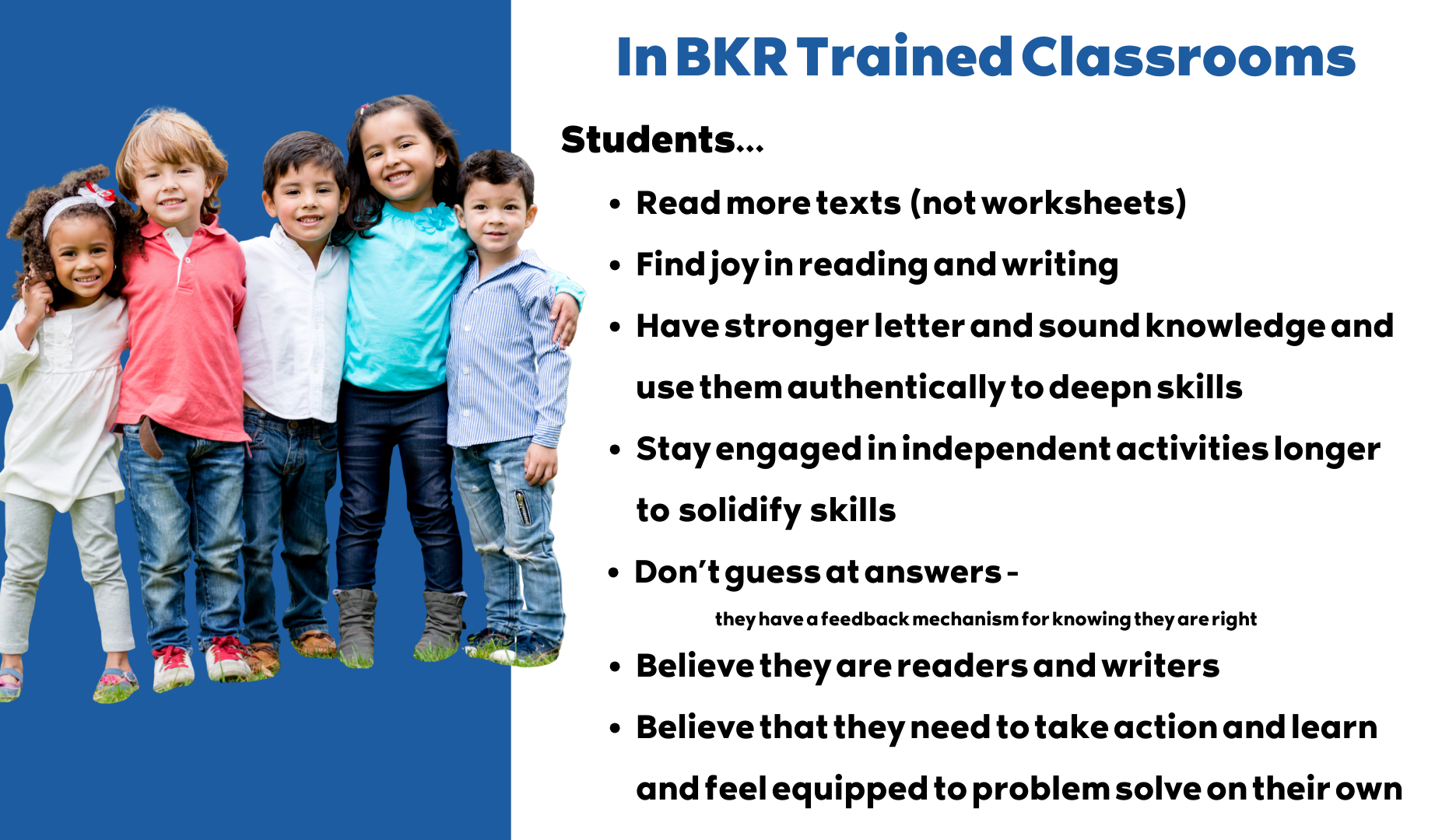 "We hadn't been getting a lot of results (with our kindergarten students). Since doing this (Building Kindergarten Readers - BKR) we've seen a switch in our student's ability to pick up texts and know how to read them and how to interact with them. It definitely helps with phonics. Students feel successful (which creates joy). Students are engaged all of the time. This gives me an avenue of teaching the skills in context and yet is the quickest they have been able to pick up sounds. It's fifteen minutes a day."
